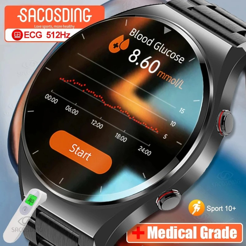 2026 New Noninvasive Blood Gloucose ECG+PPG Smart Watch Men Heart Rate Blood Oxygen Health Smartwatch IP67 Waterproof Sport Watch