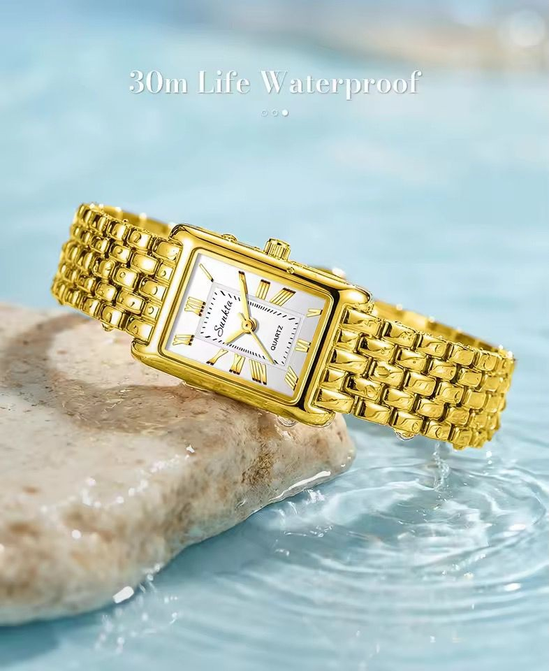 ছাড়Elegant Women’s Quartz Watch – Slim Waterproof Stainless Steel Luxury Bracelet Gift