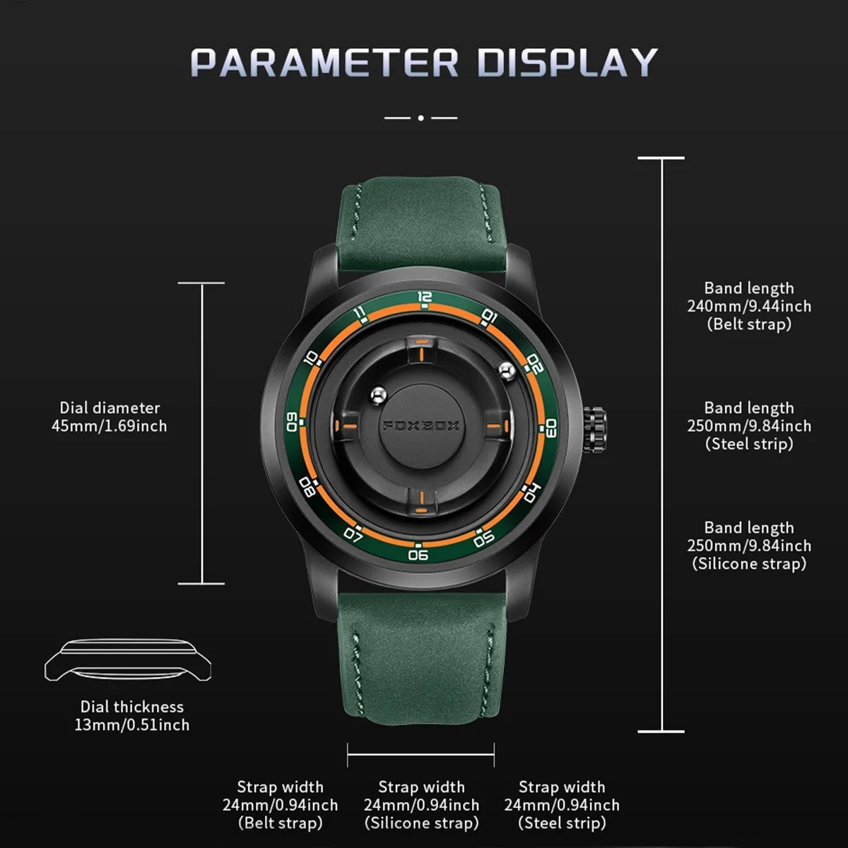FOXBOX FB0047 Magnetic steel Ball Dial Men’s Waterproof Business Watch