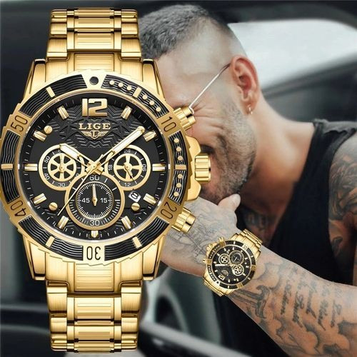 LIGE 8990 Mens Watches Top Luxury Brand Waterproof Sport Wrist Watch Chronograph Quartz Military Genuine Full Steel Relogio Masculino
