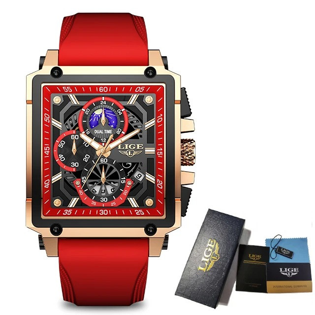 Lige Red Color Top Brand Men's Luxury Silicone Quartz Watch Sports Watches Date Clock Waterproof Wristwatch Chronograph